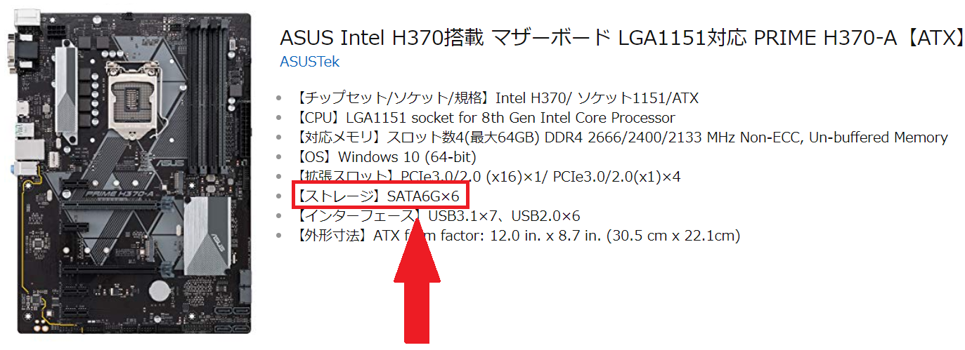 マザーボードを選ぶ際には、Serial ATA 6.0Gbpsに対応しているか調べる必要があります。