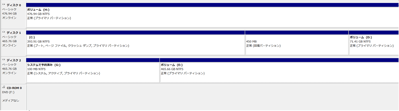 クローンを作成するためのHDD(500GB)のCドライブが100GBしかなかったので、パーティションをクローン作製前に整え、Cドライブを拡張する必要がありました。