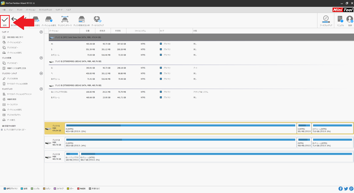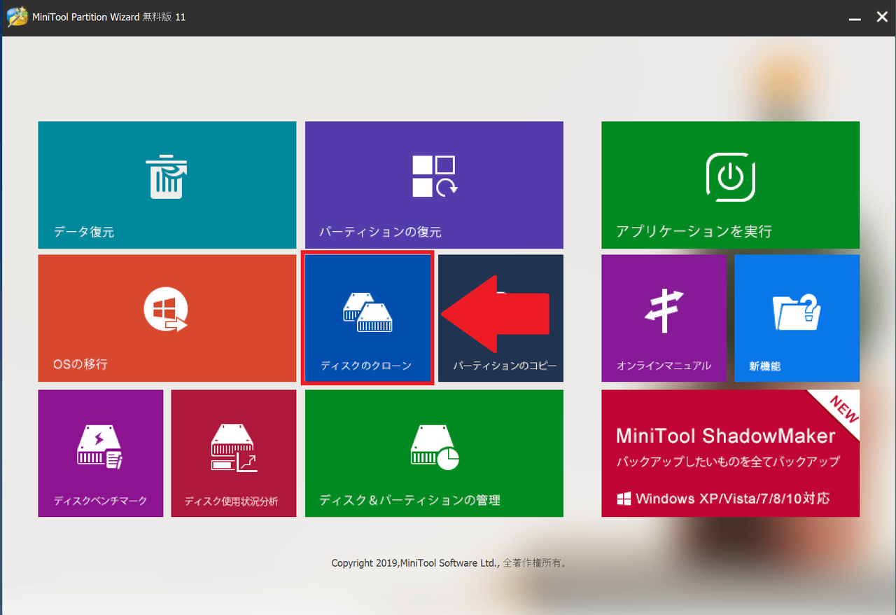 ④「MiniTool Partition Wizard」でクローンを作成
