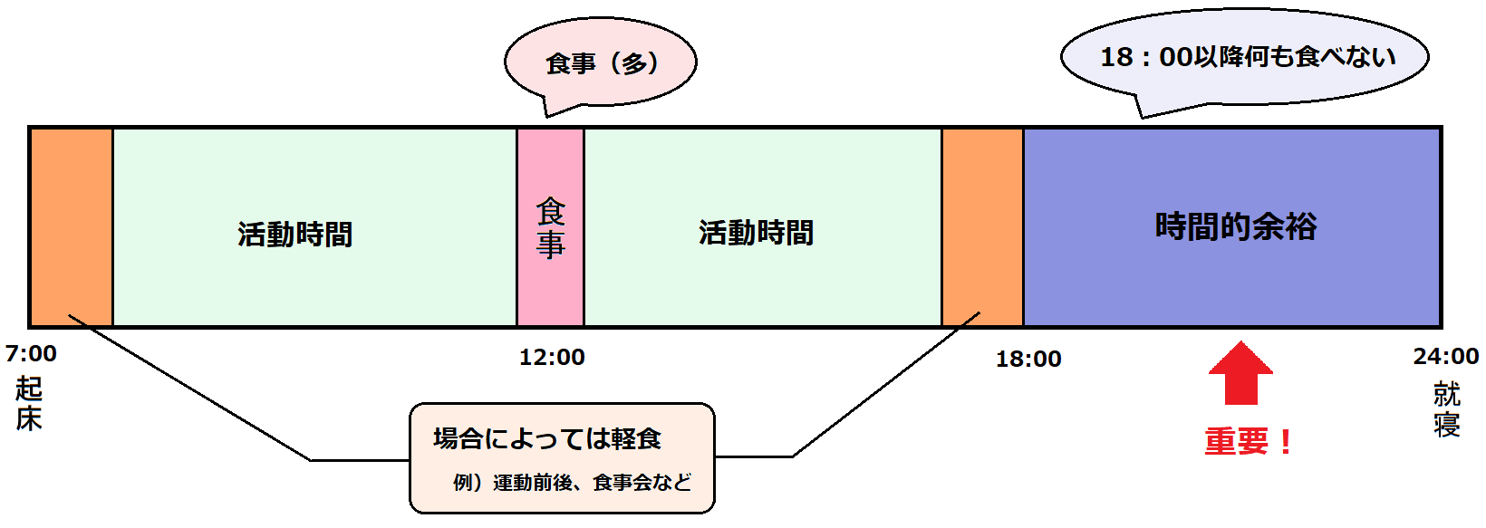 最初に見ていただいた、このグラフ↓を見ていただけると分かりますが、昼食しかとらないとなると、仕事や学校から帰宅して寝るまでの間かなりの余裕が生まれます。